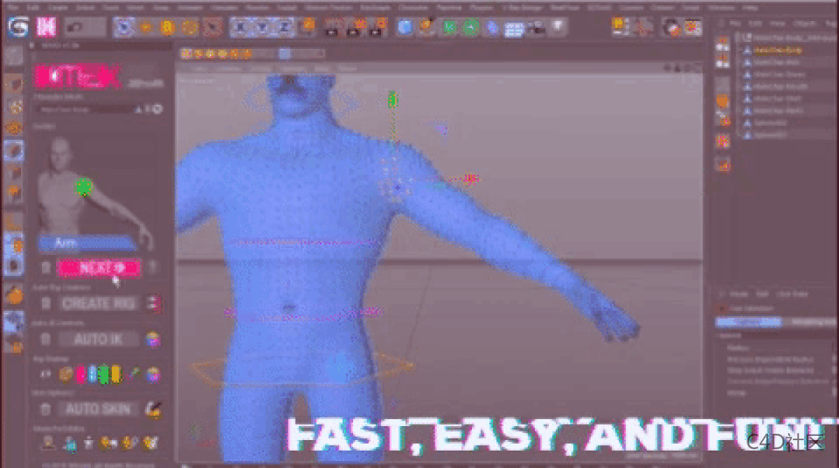3Dtoall IKMAX 是一款由3DtoAll为C4D用户开发的角色绑定插件IKMAX,口号喊得非常响亮,“让用户在几秒间完成人物角色的全身绑定”,只需几秒即可完成绑定+皮肤蒙皮,IKMAX是3DtoAll涉足绑定环节的首秀,3DtoAll之前开发的插件都是场景导出器,如MaxToC4D,MaxToMaya,C4DtoMax,MaxToBlender,MaxToModo,用于从三维软件获取数据导入到其他DCC应用程序当中。