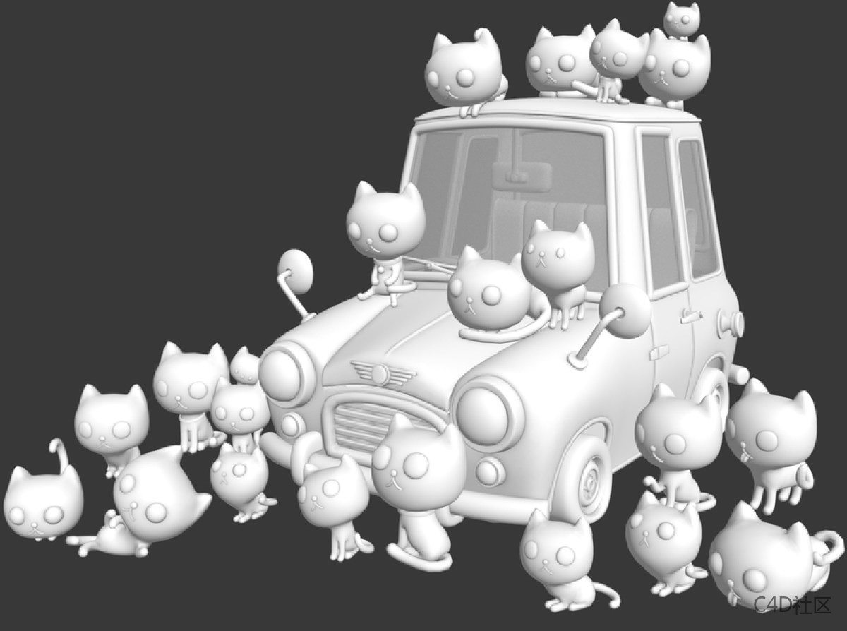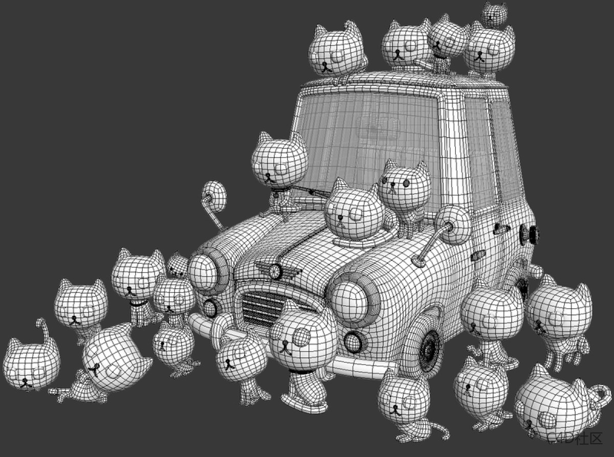 步骤02:建模这件作品的关键部分之一是三十只无家可归的猫,虽然我在这个规划阶段只创造了十九只猫。 他们在“迷你”汽车残骸上放松身心,对面一名惊讶的红发男孩站在他们面前。我使用3ds Max制作它们,投入大量的精力制作独特的猫模型。 由于3ds Max的受欢迎程度高,我可以轻松在互联网搜索所有的相关内容。 我发现在3ds Max中能更快速完成作品,但是如果我热衷于其他程序,我会尝试将它们也应用于我的工作。